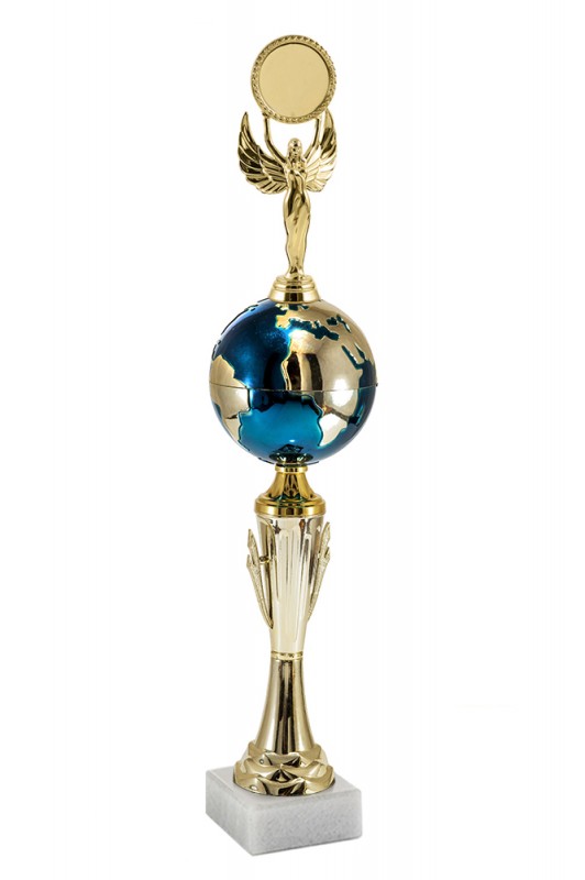 Оригинальный наградной кубок "Планета" в форме глобуса на ножке, изготовлен из пластика, крепится к мраморному постаменту. Кубок дополняется сверху фигурой необходимой для вашего мероприятия на выбор. Высота кубка зависит от выбраного его размера и размера фигуры.